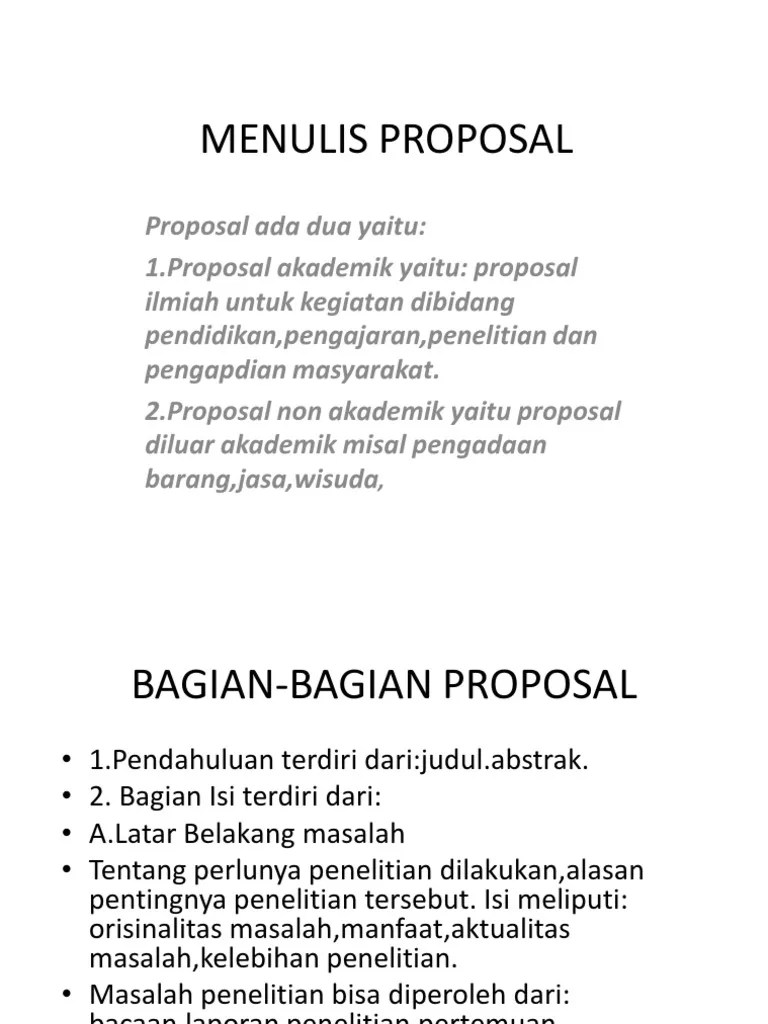 Jelaskan Bagian-Bagian Sebuah Proposal : Pengertian Proposal Adalah Tujuan Fungsi Unsur Unsur Proposal : Laporan keuangan merupakan sebuah unsur proposal bisnis yang cukup banyak disoroti oleh para investor dalam sebuah contoh proposal bisnis.. Bagian pendahuluan terdiri dari sampul dan halaman judul, kata pengantar, ikhtisar, daftar isi, dan pengesahan atau permohonan. See full list on dosenpendidikan.co.id Nah agar dapat memudahkan kita memahami apa arti proposal, maka kita dapat merujuk kepada pendapat beberapa ahli, berikut ini pengertian proposal menurut para ahli yang diantaranya yaitu: See full list on pengajar.co.id Bagaimana untuk mengetahui fungsi proposal?